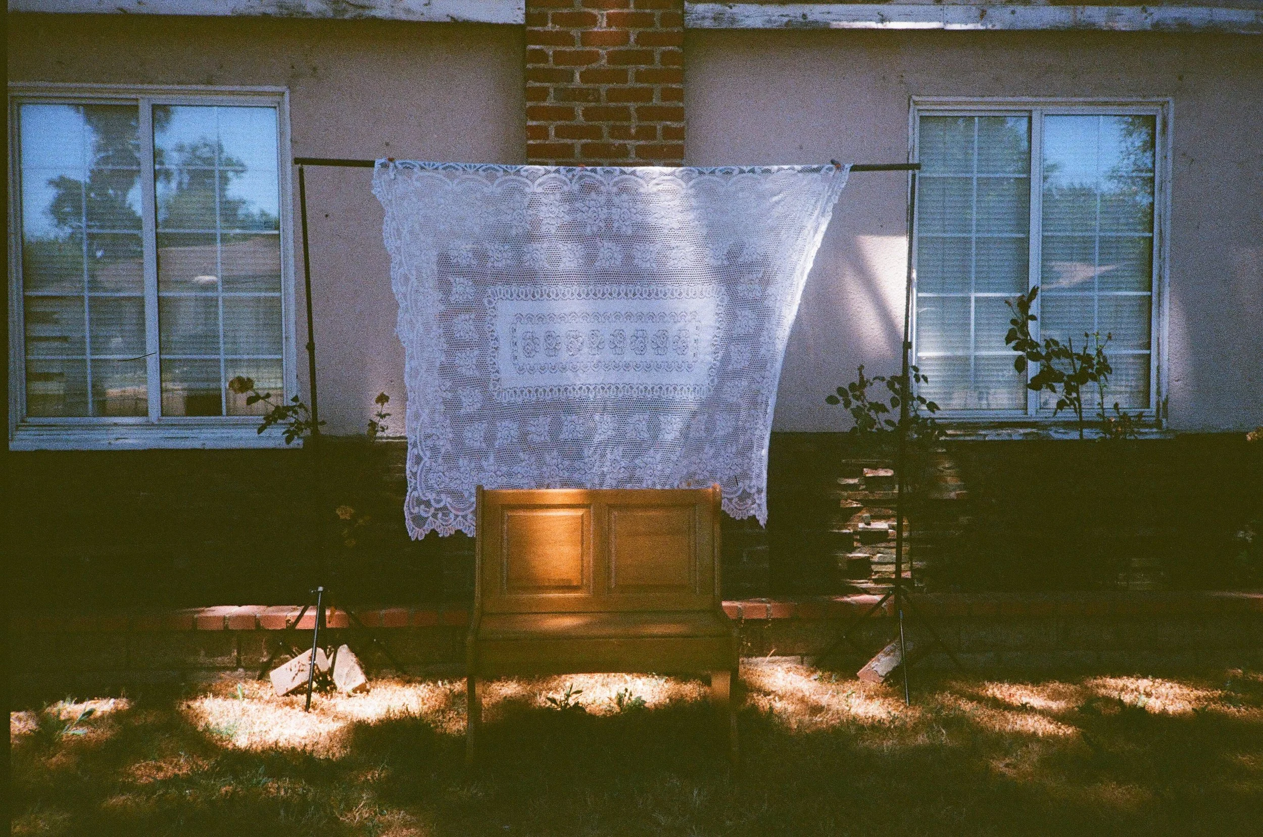photo of my grandmother’s bench + mantel outside her home in sfv